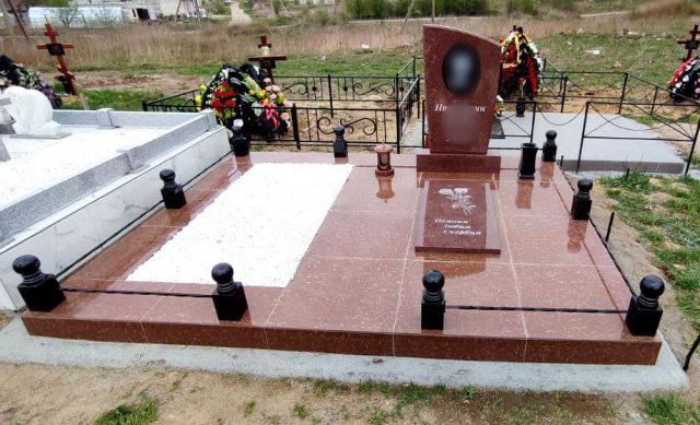 Если надгробие заказывается под ключ, т. е. с установкой, то к перечисленным элементам добавляется монолитный бетонный фундамент.